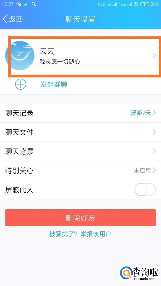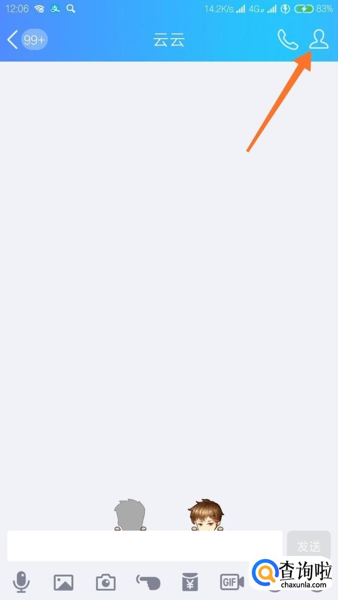打开手机QQ,找到想要删除留言的好友,打开和ta的对话框,点击右上角的小人像。