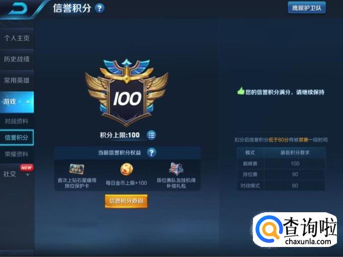 进入到【信誉积分】页面后,在这里玩家就能查看到当前的信誉积分是多少了。