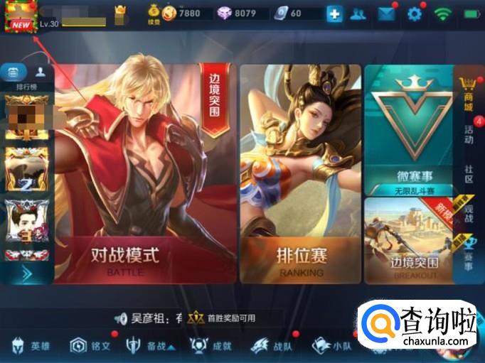 玩家想要查询信誉积分,首先点击页面左上角的头像。