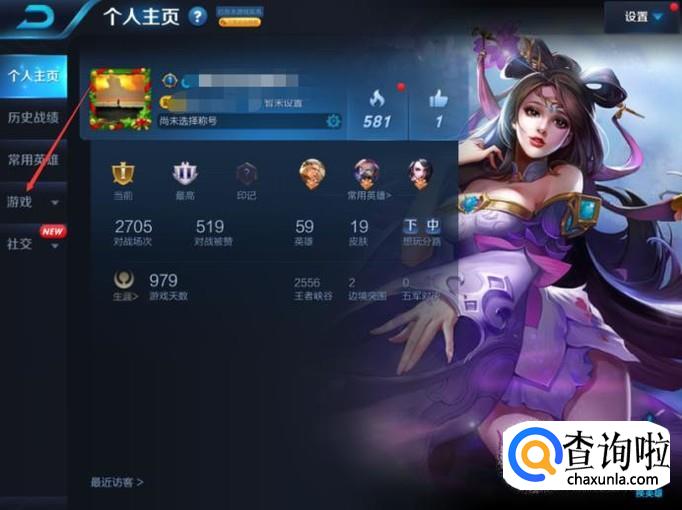 这样就会进入到【个人主页】页面,之后点击页面左侧的【游戏】。