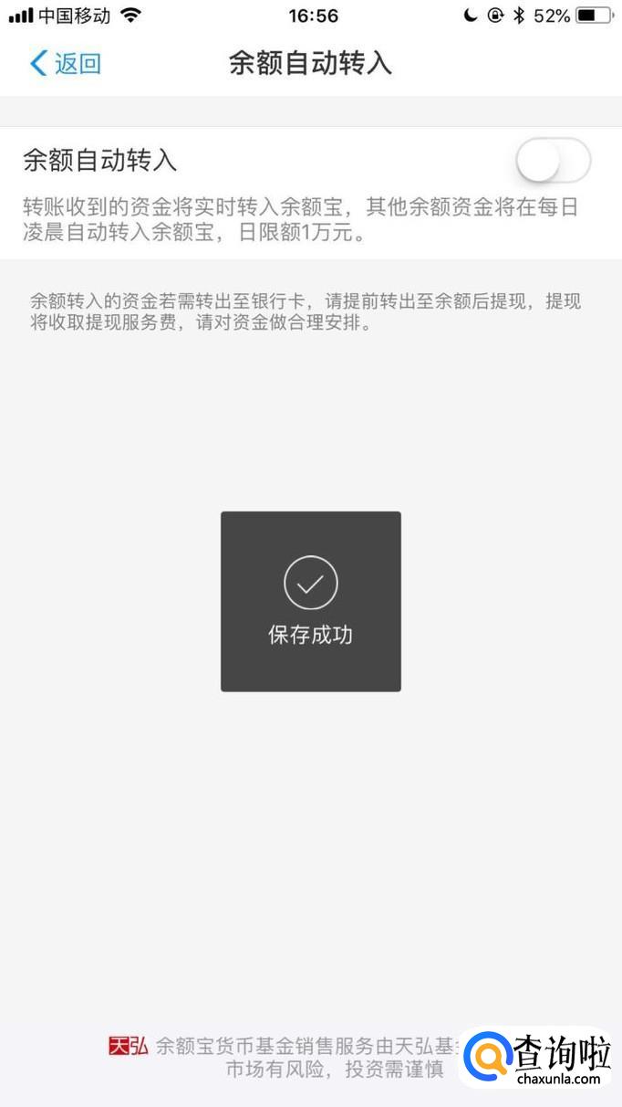 最后点击开启余额自动转入开关就可以了。
