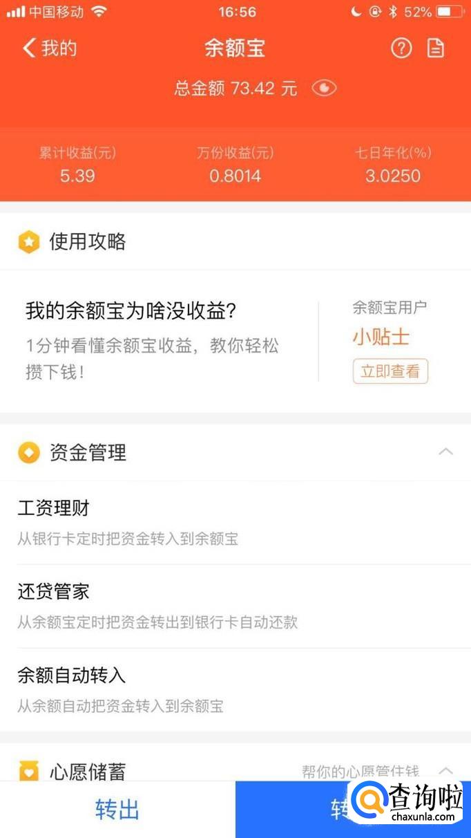 接着点击余额宝,如下图所示。