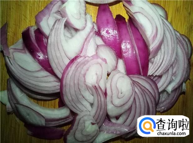 洋葱去掉最外层的衣,清洗干净,沾少许盐,切细,备用;