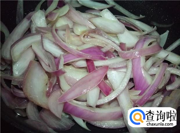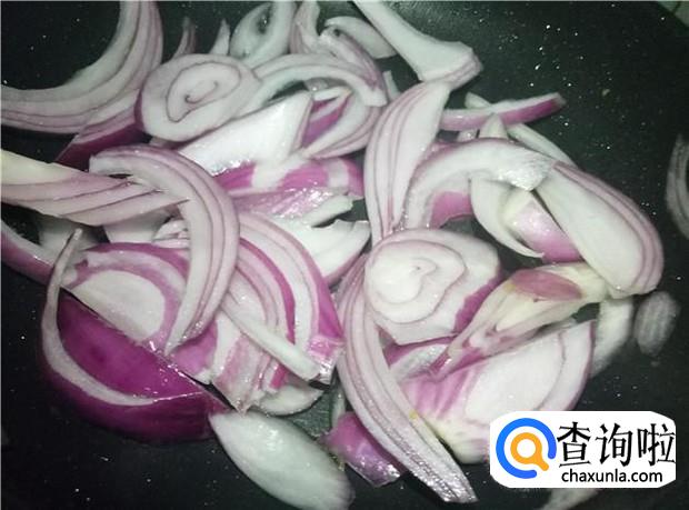 再倒入洋葱,加入少许盐,把洋葱炒软,装盆,备用。