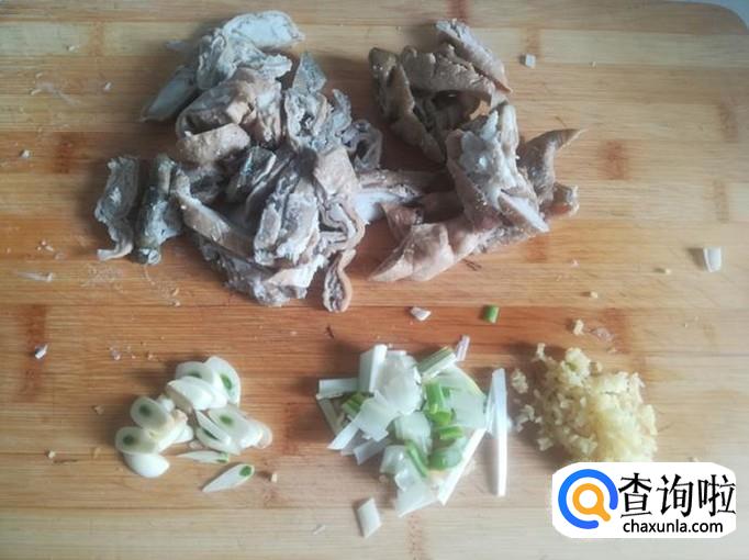 把肥肠斜切成条,葱切葱花,姜切末,蒜切片。