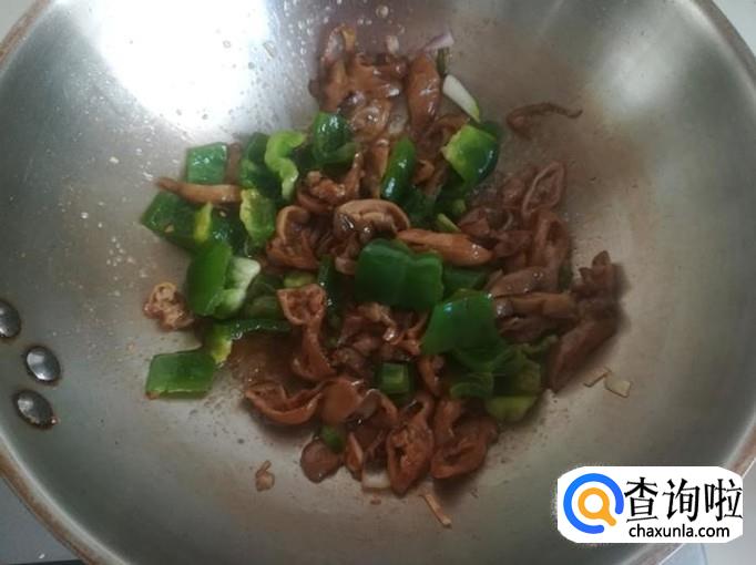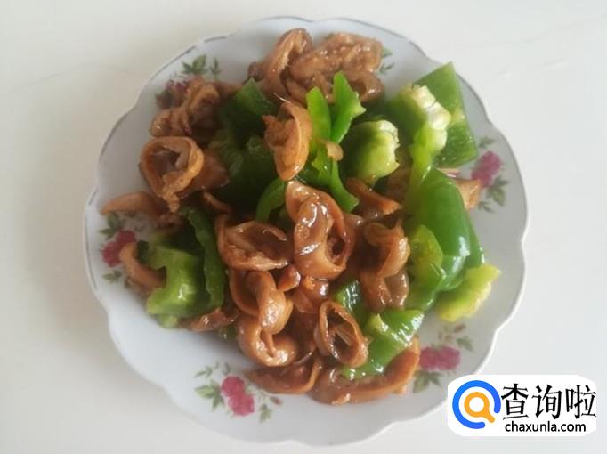 然后铲出放盘子里,这样美味肥肠炒青椒就做好了。