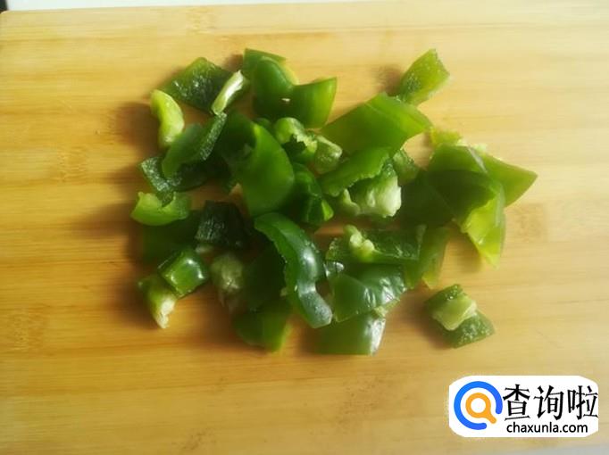 再放入青椒块,调大火快速翻炒至青椒发软即可。