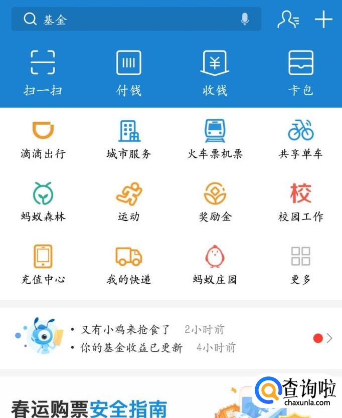 首先打开支付宝首页,点击收钱。