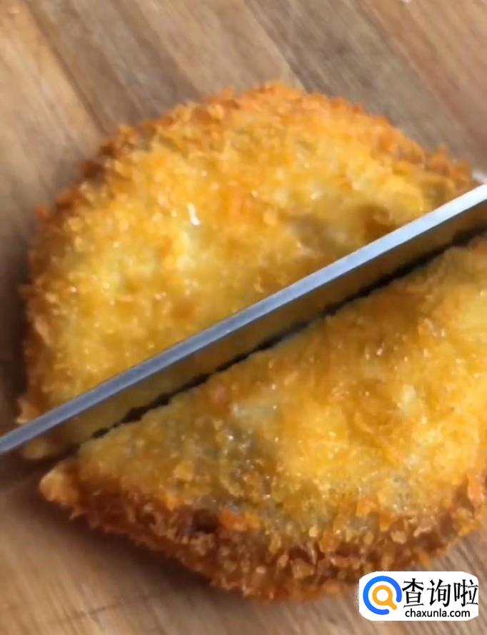 最后用刀切开,美味的油炸冰棍就制作完成啦!