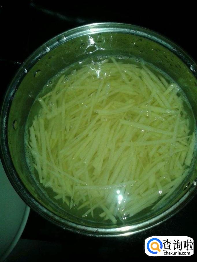我们先把土豆削皮然后用清水清洗干净,用刀把土豆切成土豆丝,切完之后浸泡在水里面。