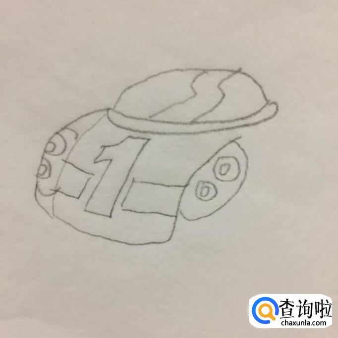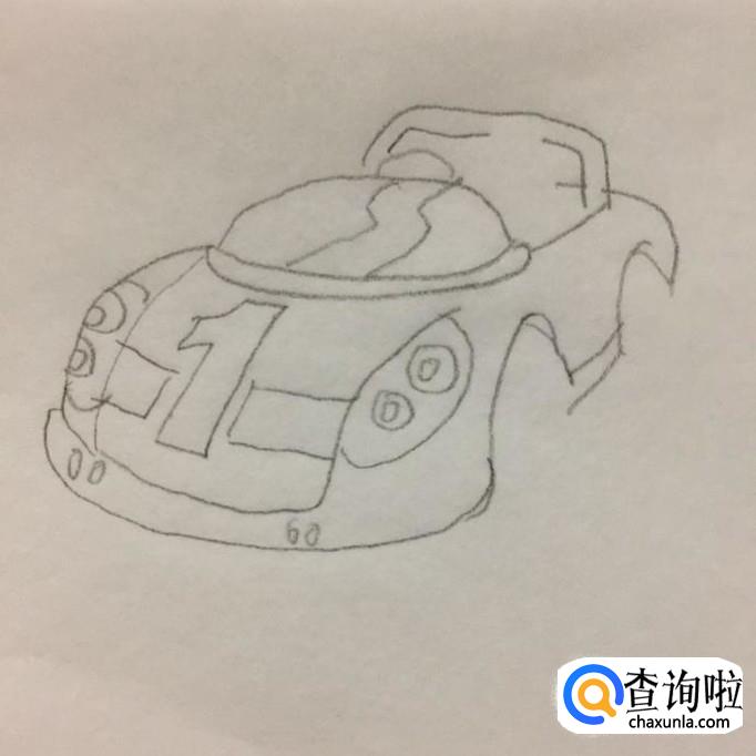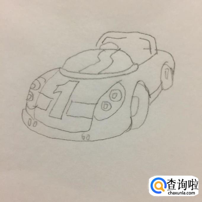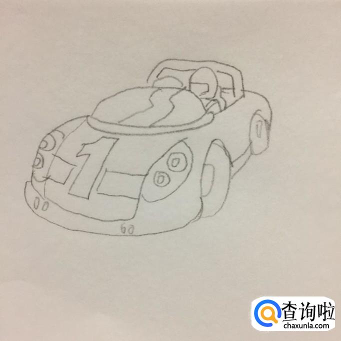 接着画出赛车的引擎盖,如下图所示。我们在画赛车的引擎盖的时候,要在引擎盖上划出一个数字1。