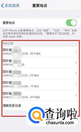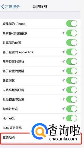 在“系统服务”的页面里点击“重要地点”