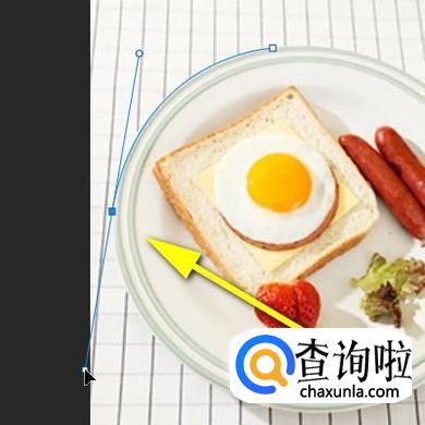 接着,再在另一处,落下第三个锚点,同样,要拖拉下,使弧线紧贴着碟子边缘。如此操作直至把整个碟子边缘绘制出封闭路径。再按CTRL+ENTER,转为选区。然后,执行反选,再按DELETE键,删除。那么,这个碟子就抠出来啦。