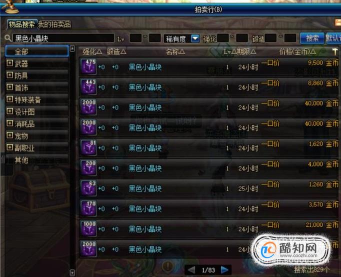 也可以直接在游戏的拍卖行中,搜索黑色小晶块并进行购买。