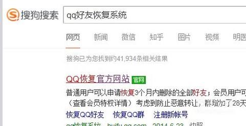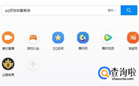 首先,在搜狗浏览器中输入qq好友恢复系统并点击回车键,如下图所示。