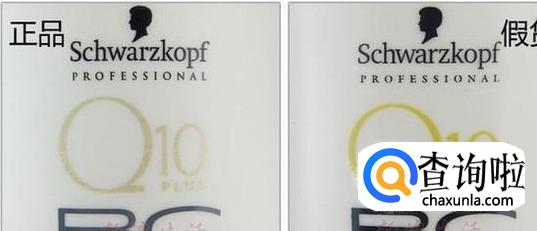 再从瓶身正面来看的话,正品施华蔻的正面字体尤其是黄色的字体是比较偏淡的,而且英文字母也是要细一点,但是假的施华蔻黄色就非常深,且英文字母也粗一些。