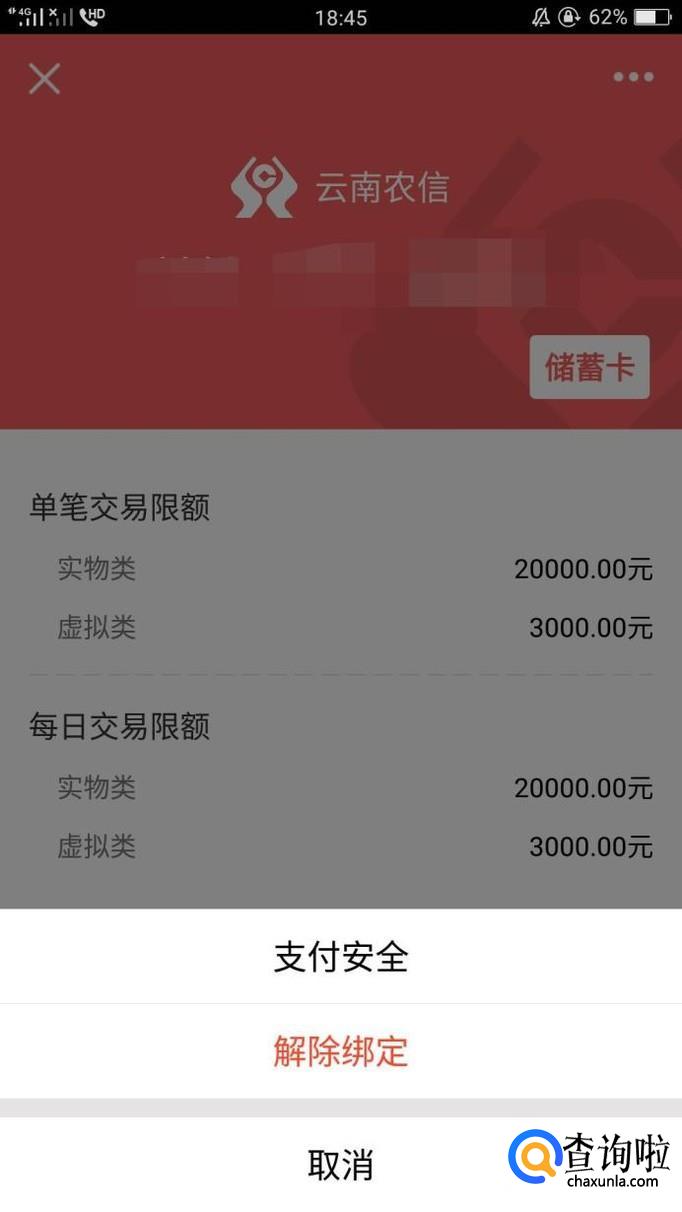 接下来出现的银行卡界面下有仍然解绑,点击它,出现如图所示界面