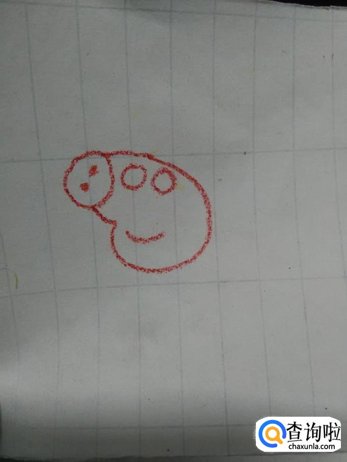 在鼻子右边,画两个圆圈,表示眼睛,在眼睛下面,画一条弧线,表示嘴。