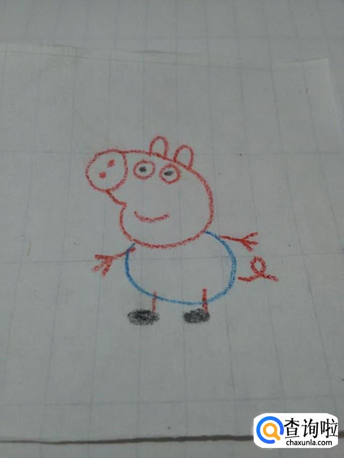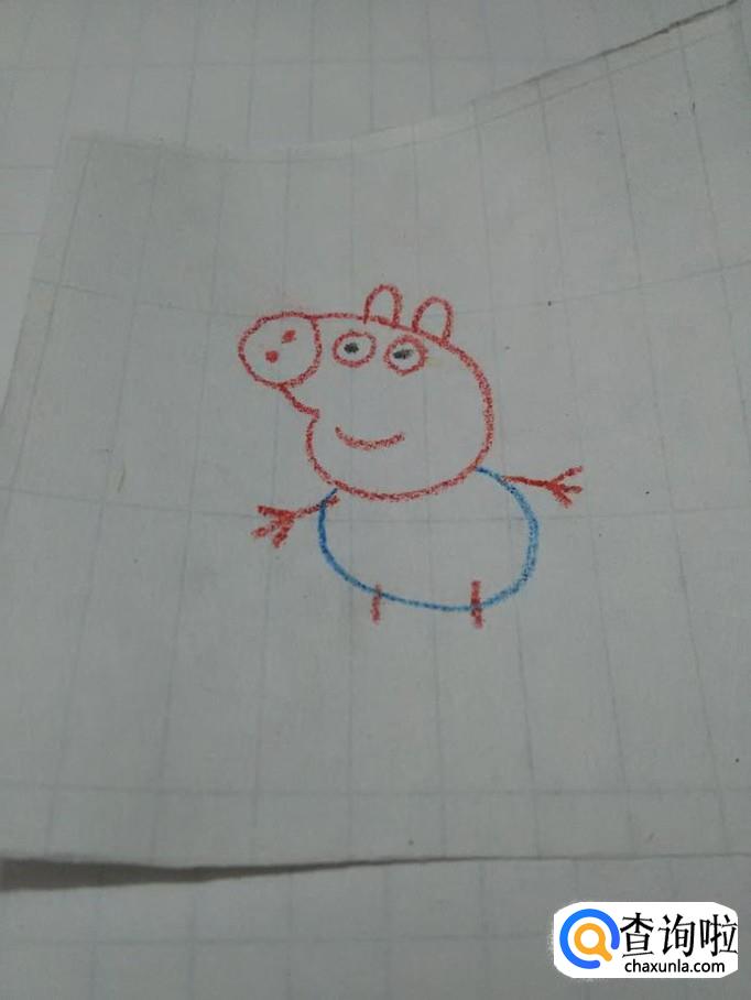 再用红笔在身体右侧画一条螺旋状的曲线,表示尾巴,小猪乔治就画完了。