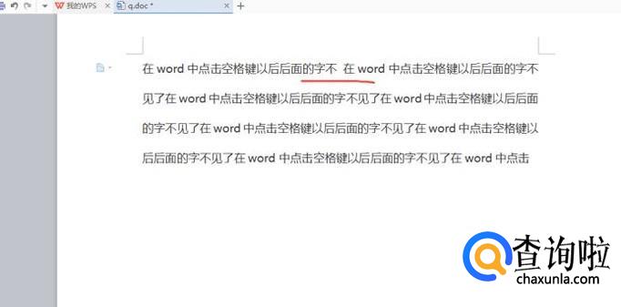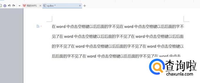 点击【空格键】会发现后面的文字消失了,如下图所示: