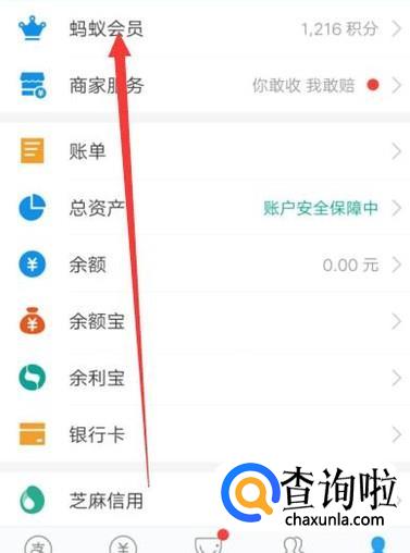 进入之后,在“我的”页面,点击“蚂蚁会员”,点击并进入,如图所示。