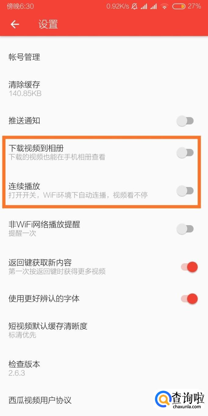 接下来勾选“下载视频到相册”和“连续播放”两个选项即可。