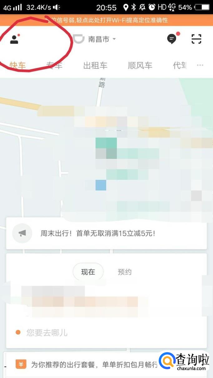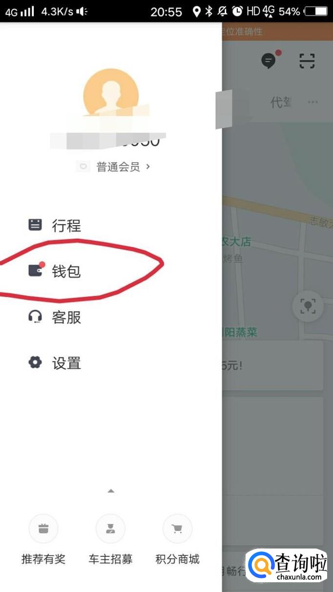 打开滴滴出行,然后点击图片左上角的头像,再点击钱包。