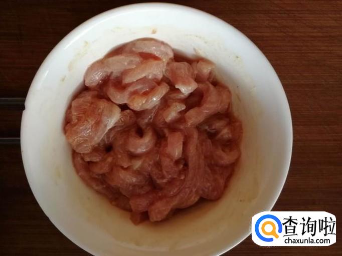 里脊肉洗净切丝,加入水淀粉、生抽、盐搅拌均匀。