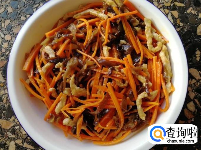木耳泡发,清水洗净后切成丝。胡萝卜洗净切丝。