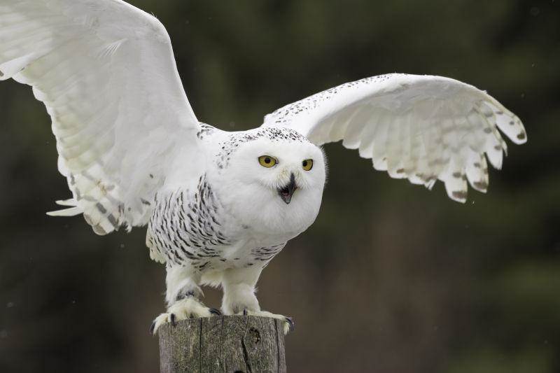 雪鸮有黑色的喙和黄色的眼睛,它们以啮齿动物、草原田鼠和老鼠为食。雪鸮有着敏锐的视力,可以从高空捕捉到猎物的踪迹,它还有着锋利的爪子,可以攻击人类的头部和面部。