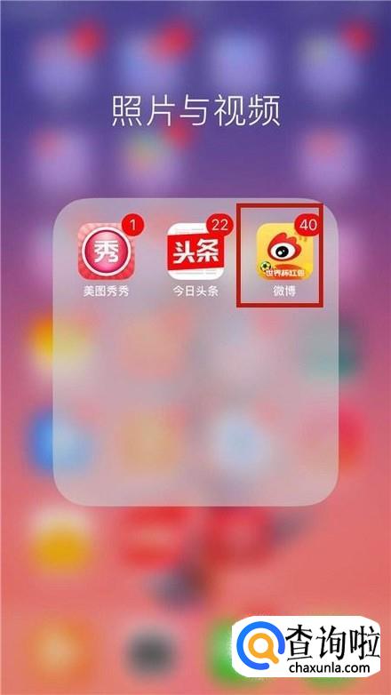 首先在我们的手机桌面上找到微博并点击它,如下图所示。