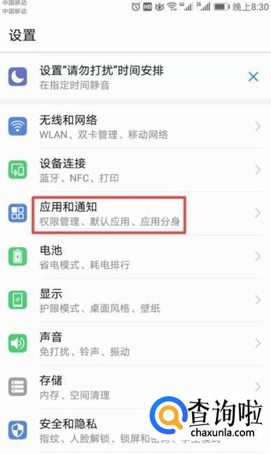 进入设置后,我们点击应用和通知;