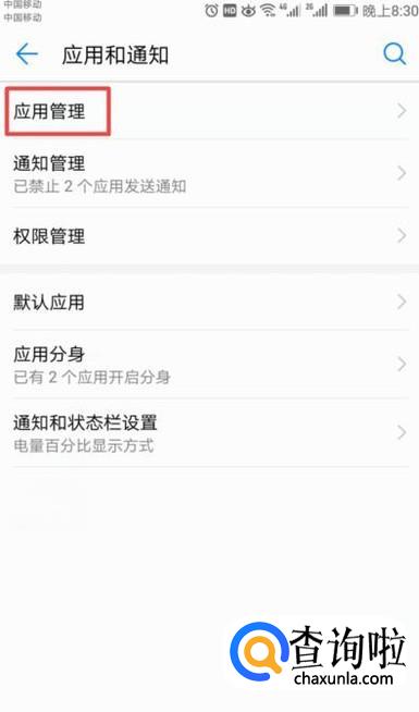 弹出的界面,我们点击应用管理;