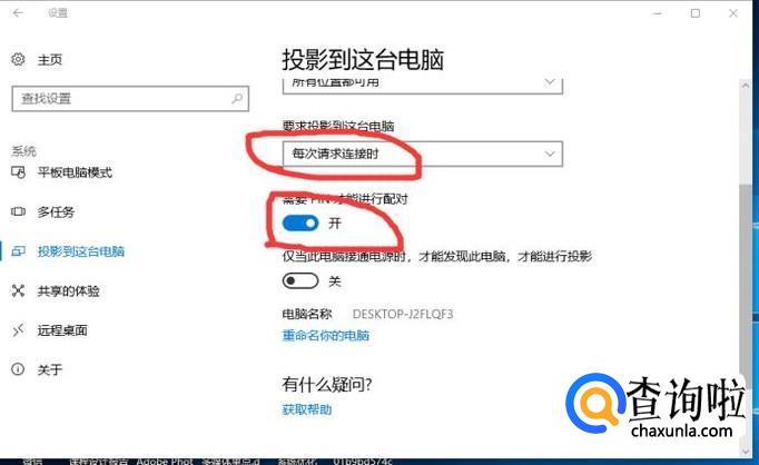 将要求投影到这台电脑设为每次请求连接时,如下图所示。