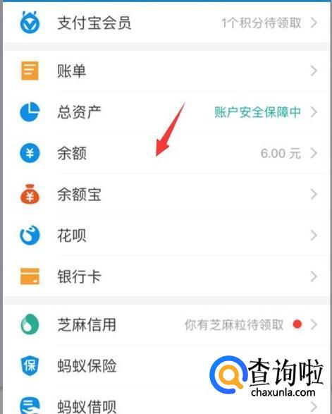 然后在我的界面中找到余额,然后点击进入,如下图。