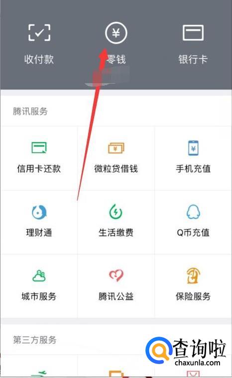 然后找到零钱点击进入,如下图