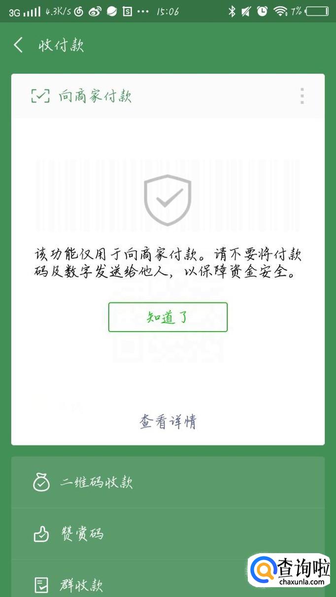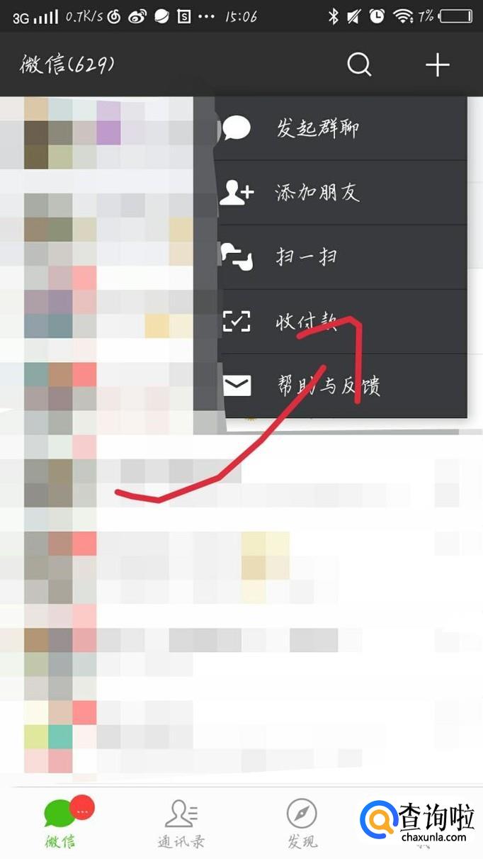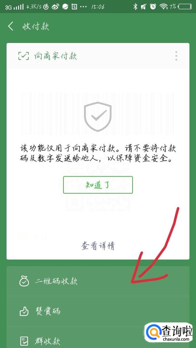 点击“二维码收款”选项,如图1箭头所示。这样别人扫你的二维码支付,你就能收到钱了。