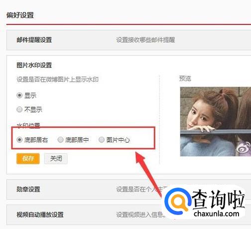 进入之后,即可选择微博的水印位置,然后点击“保存”即可,如图所示。