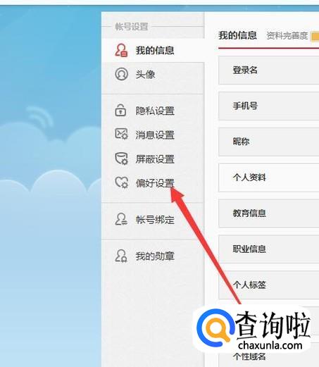 进入之后,点击“偏好设置”,进入下一页面,如图所示。