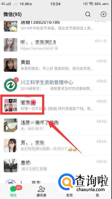 进入【微信】后,在微信【首页】中,找到你要踢人的微信群。