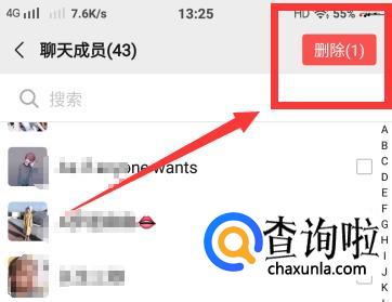 点击之后,就进入【删除成员】的页面啦,找到你需要踢掉的人,点击一下就可以勾选成功了。