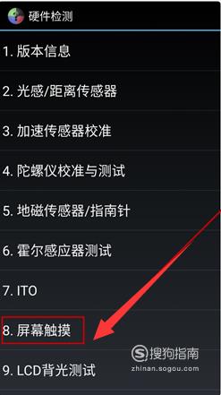 之后界面就弹出“硬件检测”的界面,我们选择“屏幕触摸”。