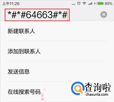 先来测试一下,点击“拨号”,然后输入“*#*#64663#*#*”。
