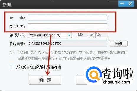 然后渐入片名和创作者并点击确定,如下图所示。