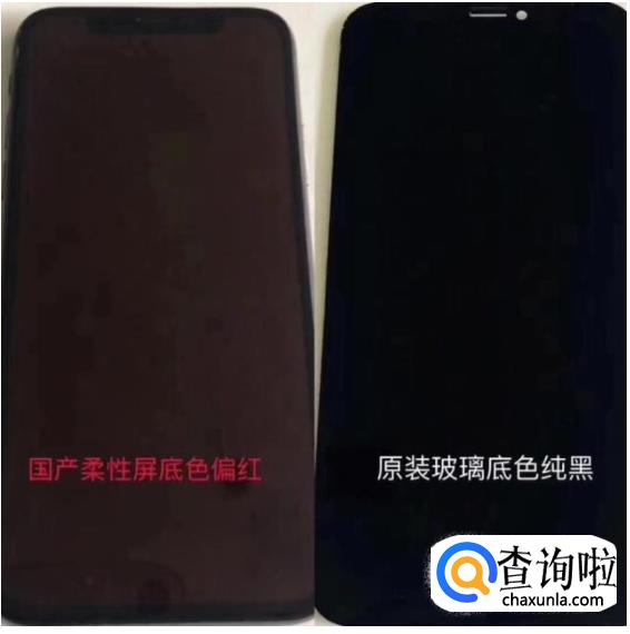 说完亮屏状态从色差上区分仿屏跟原屏,现在说说从息屏状态判断方法,如图,仿屏的屏底色是偏红的,原屏底色是纯黑的,这个方法也适用判断所有的苹果屏幕。判断原理是因为国产屏采用的偏光和液晶跟原屏是不一样的。