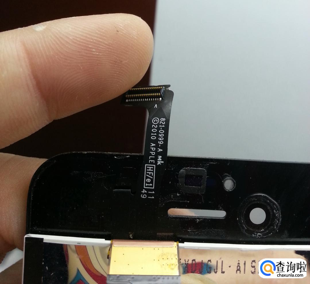 我们可以从手机屏幕排线的光滑程度上来分辨,正版原装的屏幕苹果标志排线做工精细,排线黑色不发亮。