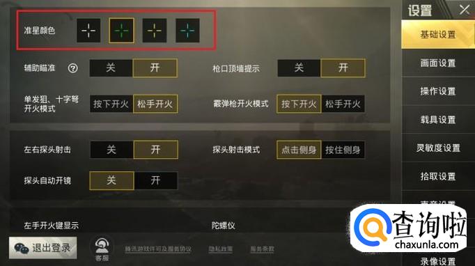 在基础设置中,可以对准星颜色进行更改,共有四种准星颜色可以进行选择,系统默认为绿色。