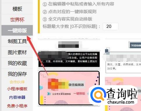 接着打开一个自己喜欢的微信编辑软件,然后进入官网,接着登录微信公众号,然后使用所提供的样式,然后将文章排列好来即可,这步需要一定的时间和个人审美。