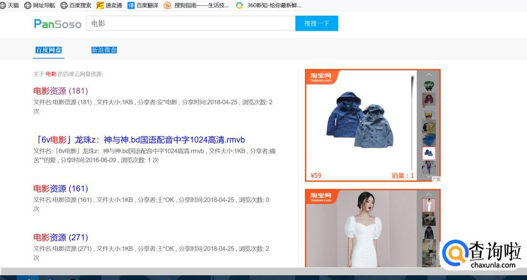 点击第一个连接进入“盘搜搜”的搜索界面,搜索你需要的东西。