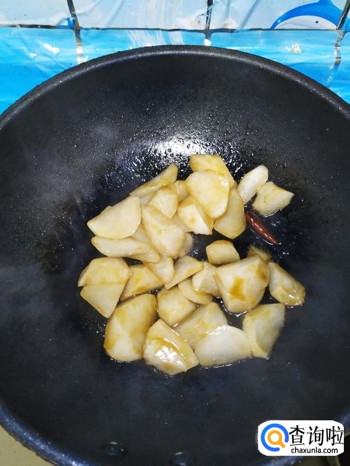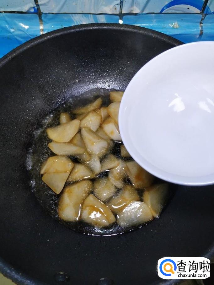 加入适量清水,大火将水烧开,改小火,慢慢收干汤汁。